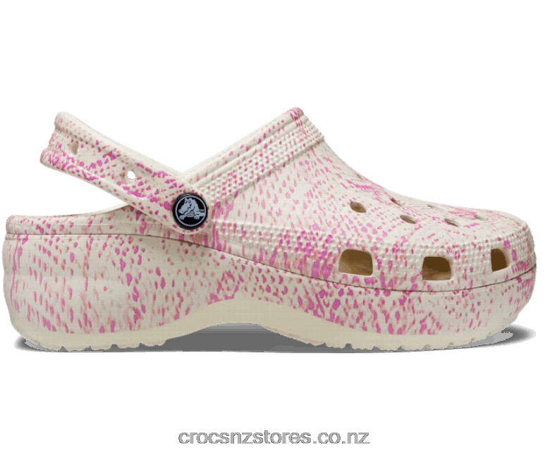 Elevated platform design, stylish graphics and classic comfort come to life in the Women's Classic Platform Snake Print Clog. This shoe features a bold snake print graphic, along with a heightened, contoured outsole that supports the classic upper. Plus, the customizable backstrap also holds Jibbitz charms, so you can personalize your look even more. Show off your wild side with the Women's Classic Platform Snake Print Clog.